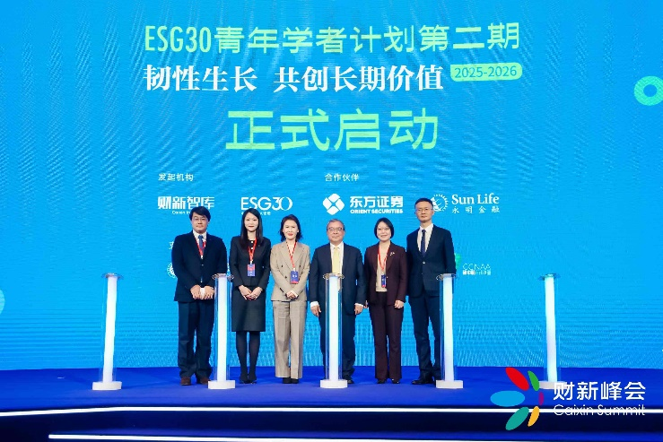 年会现场,由财新智库、中国ESG30人论坛(ESG30)发起的ESG30青年学者计划第二期(2025-2026)正式启动,并向各界青年才俊开放课题申报。原中国银保监会副主席、全国社保基金理事会原副理事长、项目学术顾问陈文辉,财新传媒总裁、财新智库副董事长、项目发起人张立晖,清华大学公共管理学院教授、清华大学产业发展与环境治理研究中心主任、项目学术导师陈玲,东方证券副总裁陈刚,香港永明金融有限公司副总裁及首席业务发展总监汤淼,财新传媒副总裁、财新智库执行总裁高尔基等嘉宾,共同出席了启动仪式。