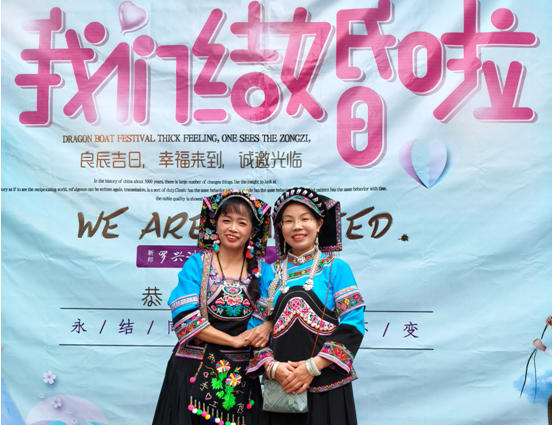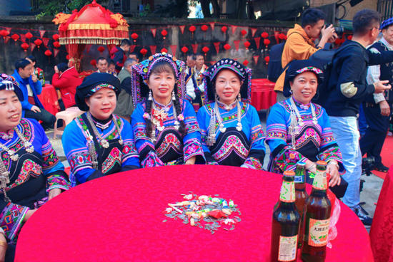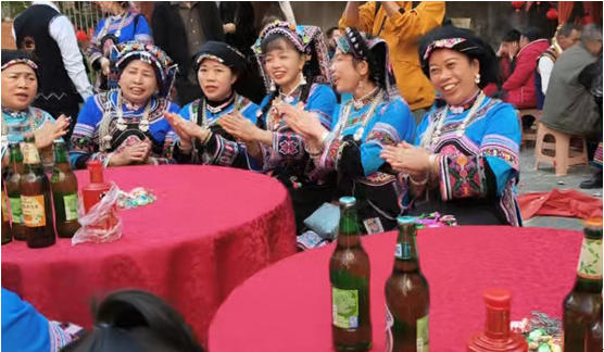 说完,罗启凤带领一拨迎亲队又唱起了敬酒歌,只听她和姊妹们用布依语唱道: