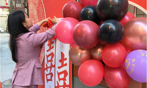 东边一朵红云起,西边一朵红云开。两朵红云结连彩,迎接新人进门来。