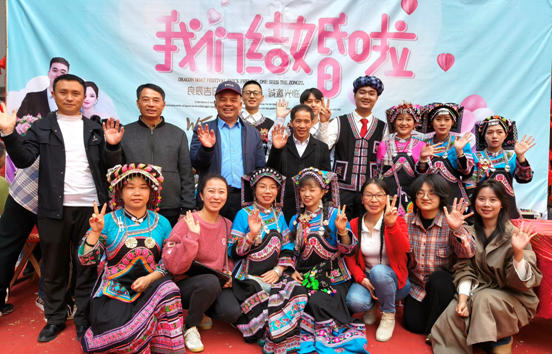 2025年11月30日,国家一级口岸的云南河口,云山叠嶂变通途,千层碧浪耀长空;鸡鸣破晓催朝露,龙腾鱼跃映彩虹;晨曦氤氲赶春早,条条路衢贵客到;人声鼎沸喧城啸,万里云端祥瑞绕。就连红河、南溪河对岸的越南,时空也都展现出一副别样的温情,时值早晨8时8分,随着对对唢呐的声声齐鸣,阵阵悦耳的啦啦曲响起,河口县布依族罗福安家民族民俗婚礼迎宾仪式正式开启。