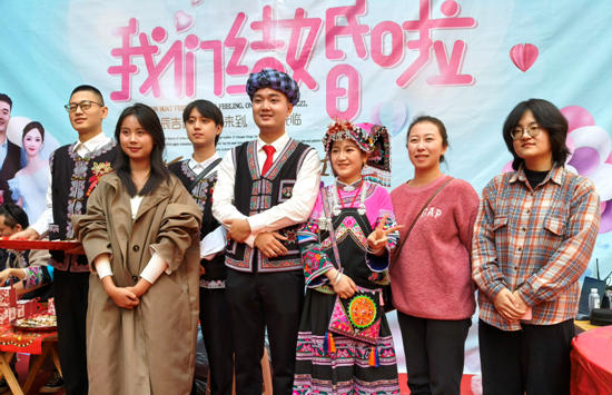 认完亲后,双方接亲送亲人就在新房里唱接亲送亲歌。同样由礼仪王华武主持,他说道:“今天是布依族罗兴浩然与秦金星结婚,现在请新郎新娘入场”。