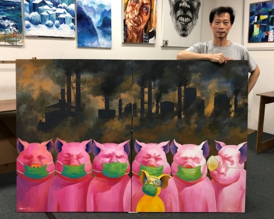 第三个方向,他以动物为题材,表现世界上曾发生或将要发生的灾难,用幽默手法讽刺人类贪婪自私的行为。我们在他的作品中不仅能看到一种热情奔放、抒情浪漫的情怀,同时也显现出一种既有中国传统文化精神,又能以独特的现代表现形式,并带有环保意识的倾向,他的作品既具有视觉冲击力,又具备情感共鸣。