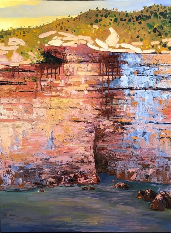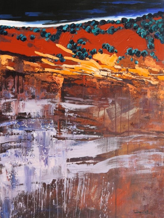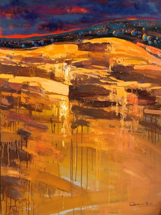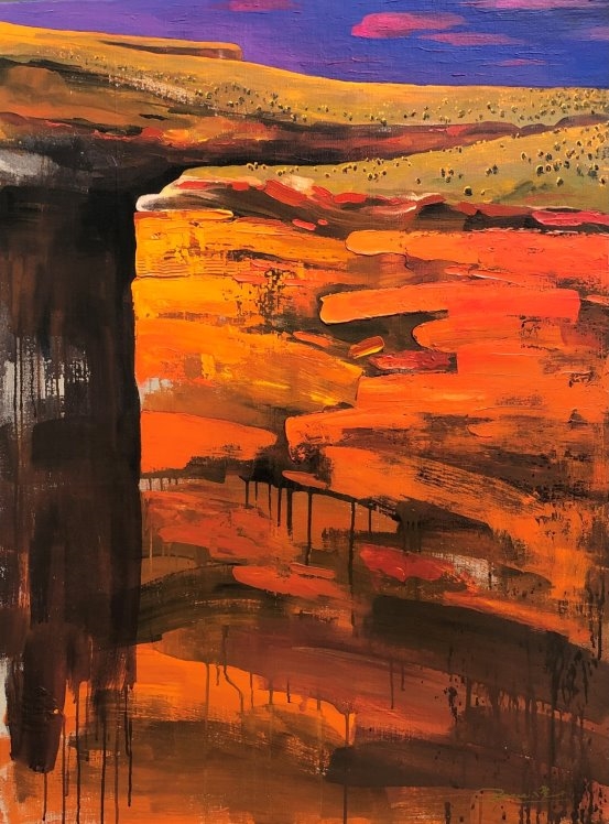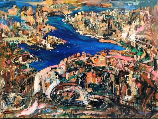 第二是描绘澳洲的风景和花卉为主,在这个方向的探索中他加入了澳洲土著艺术元素,表现澳洲色彩斑斓的自然景观和人们休闲的生活方式。