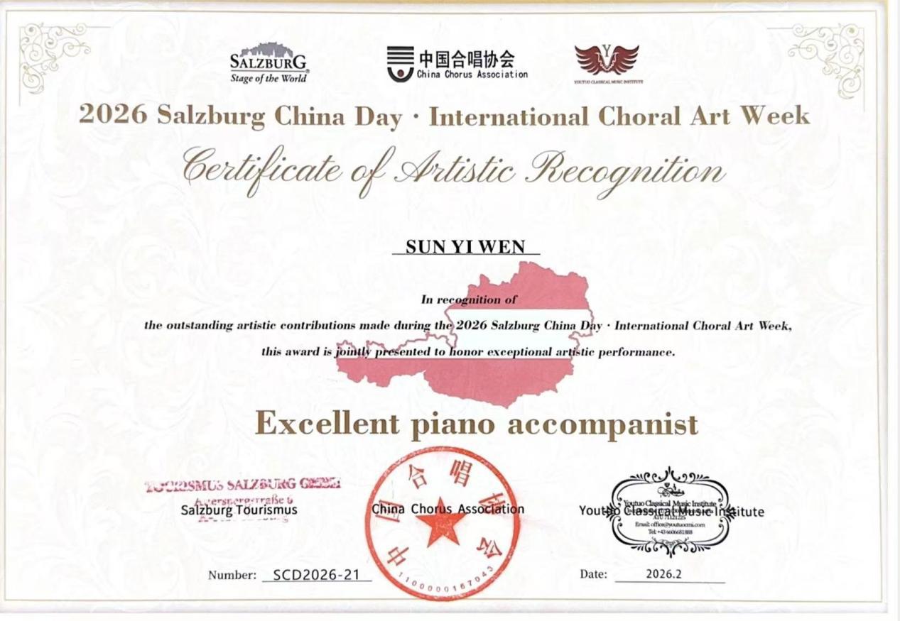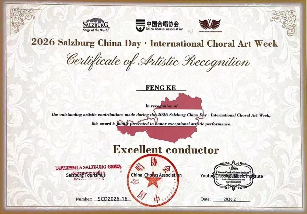 2026年,恰逢中奥建交55周年、莫扎特诞辰270周年,一场跨越山海的艺术交流在欧洲精彩上演。从长江之滨到多瑙河畔,从萨尔茨堡大会堂到维也纳金色大厅,武汉节日合唱团凭借精湛的演唱技艺惊艳亮相2026萨尔茨堡中国日・国际合唱艺术周,一举斩获合唱一等奖、优秀指挥奖、优秀艺术指导奖三项大奖,让湖北武汉的合唱艺术在世界顶级舞台绽放光彩,为中奥文化交流写下温暖而璀璨的一笔。
