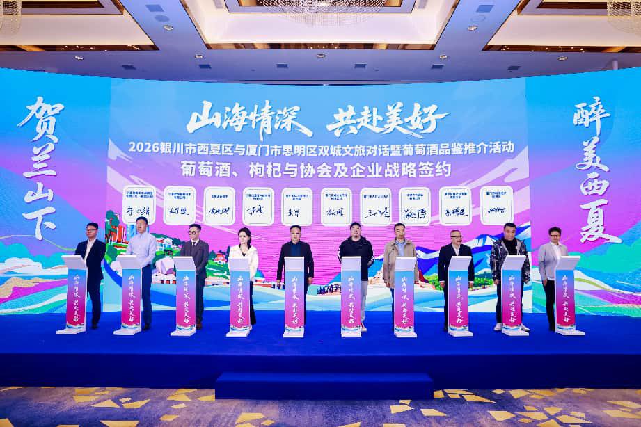 2026年3月6日,由中共银川市西夏区委员会、西夏区人民政府主办的“山海情深 共赴美好——2026年银川市西夏区与厦门市思明区双城文旅对话暨葡萄酒品鉴推介活动”在厦门圆满举行。这场跨越2000余公里的东西文旅交流活动,两地相关部门、行业协会、重点文旅企业等100余人齐聚一堂,共叙山海情谊、共商发展大计、共绘锦绣蓝图。