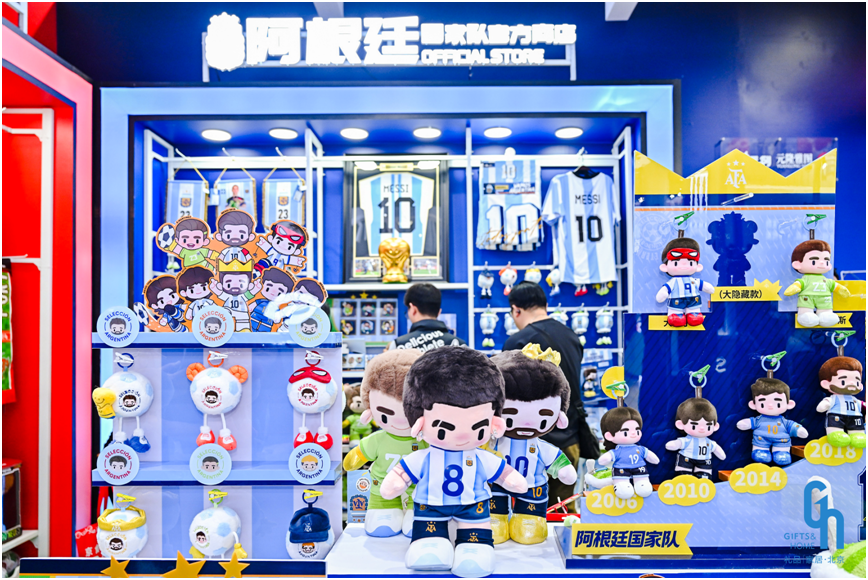 与此同时,体育IP与文创潮玩的融合也成为本届展会的一大看点。元隆雅图旗下零售品牌“元隆元创”携阿根廷、葡萄牙等多个足球国家队官方IP产品亮相,产品涵盖球星周边、潮玩、盲盒等热门品类,并在现场打造产品展示、销售与互动融合的沉浸式体验空间。随着2026世界杯临近,相关产品即将开启全平台销售。“元隆元创”将发挥在产品开发、供应链保障、终端渠道等方面的全链路能力,推动体育IP与文创潮玩的融合,助力实现“体育破圈”与“潮玩升级”的双向赋能。